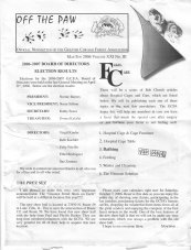 regular membership newsletter Ann Gruden 14-16 Sherbrooke Ave., Hartford CT 06106-3838, U.S.A. E-mail: LVgruden@ferret-fact.org Phone: 860-247-1275 bi-monthly, first year membership $25 US, renewals $20 US F.A.C.T., Ferret Association of CT Ann Gruden 16 Sherbrooke Ave., Hartford CT 32136, U.S.A. E-mail: agruden@worldnet.att.net Phone: 860-247-1275 special newsletter for people who finance the care of elderly ferrets at F.A.C.T. Bi-monthly, as long as the foster grandparents continue to support these ferrets for at least $5 US per month Off the Paw, Greater Chicago Ferret Association